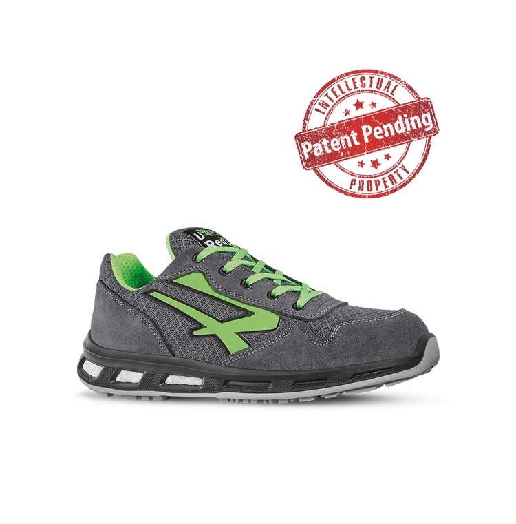 Scarpe antinfortunistiche basse , leggere, e comode , con tomaia in nylon ultra traspiranti e morbida pelle scamosciata, puntale in alluminio, antiscivolo e suola PU/PU infinergy.